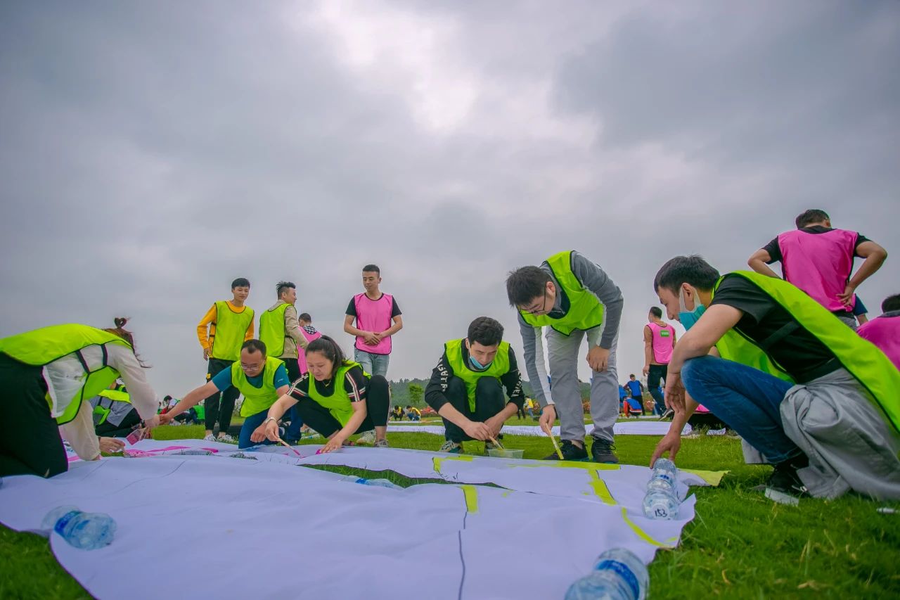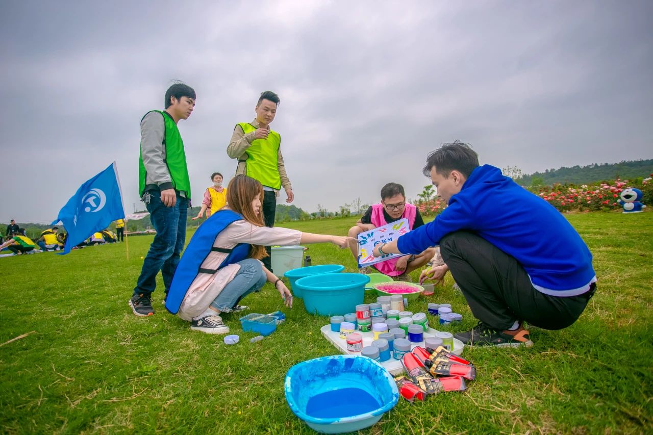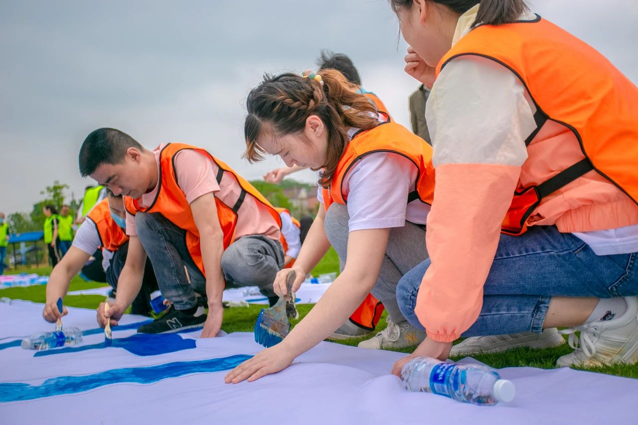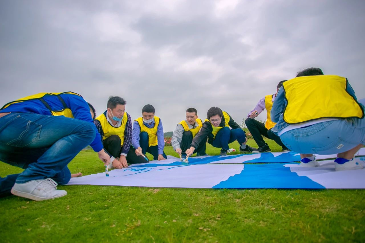 全體隊員利用顏料、畫筆等材料,在畫布上共同繪出我們心中的愿景、企業(yè)的宏偉藍(lán)圖,攜手共作,繪出多彩明天。